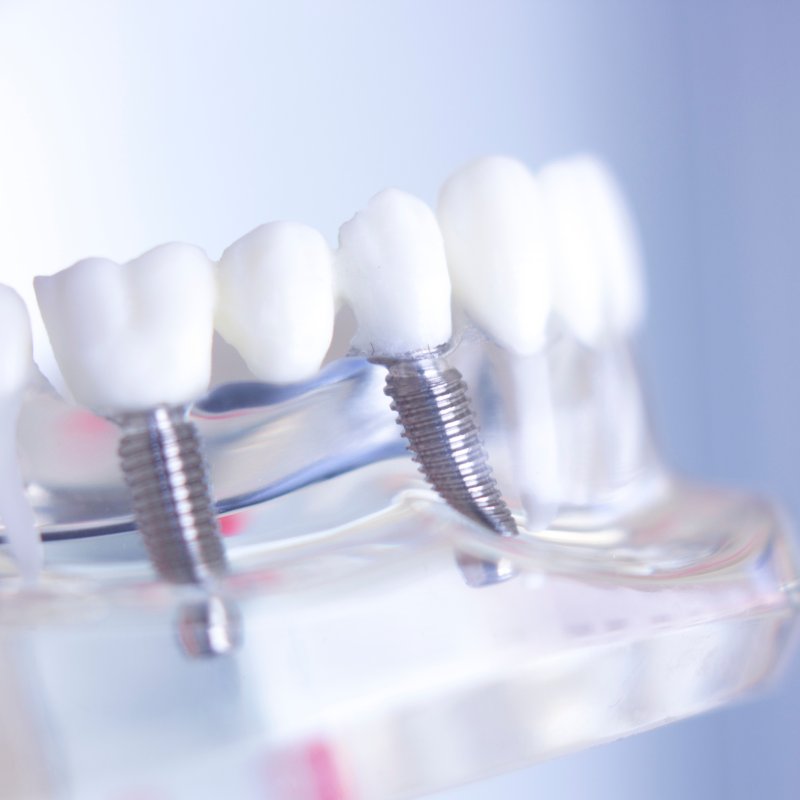 A dental implant is a small titanium post that acts as an artificial tooth root. Once placed into your jawbone, it fuses naturally through a process called osseointegration. After the implant heals, a connector piece (abutment) and a custom-made crown are attached, creating a stable, natural-looking tooth replacement that blends perfectly with your smile.